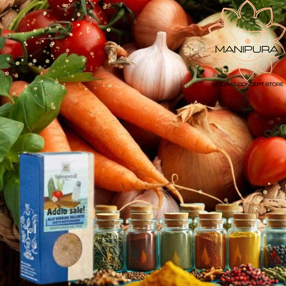 Verdure* 40.2% (pomodori* 14.5%, carote*, zucchine* 8.3%, cipolle*), basilico*, origano*, timo*, aglio* 8.2%, rosmarino* 8%, prezzemolo*, paprika dolce*, paprika piccante*. *biologico