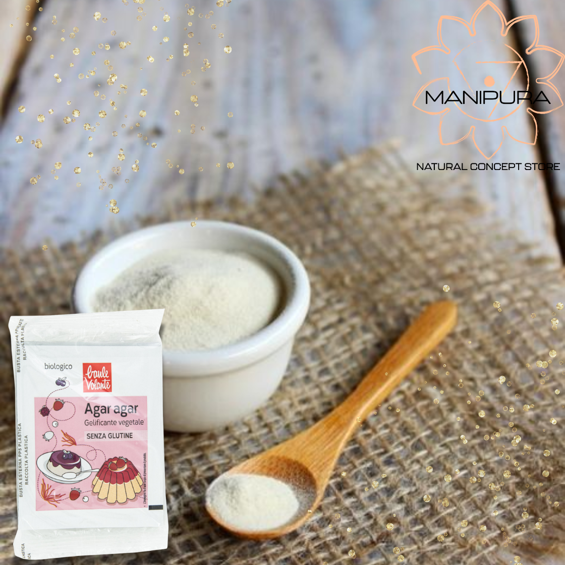 L'agar agar è un gelificante senza glutine di origine vegetale, estratto da diversi tipi di alghe rosse, le più utilizzate delle quali sono la Gracilaria e la Gelidium.