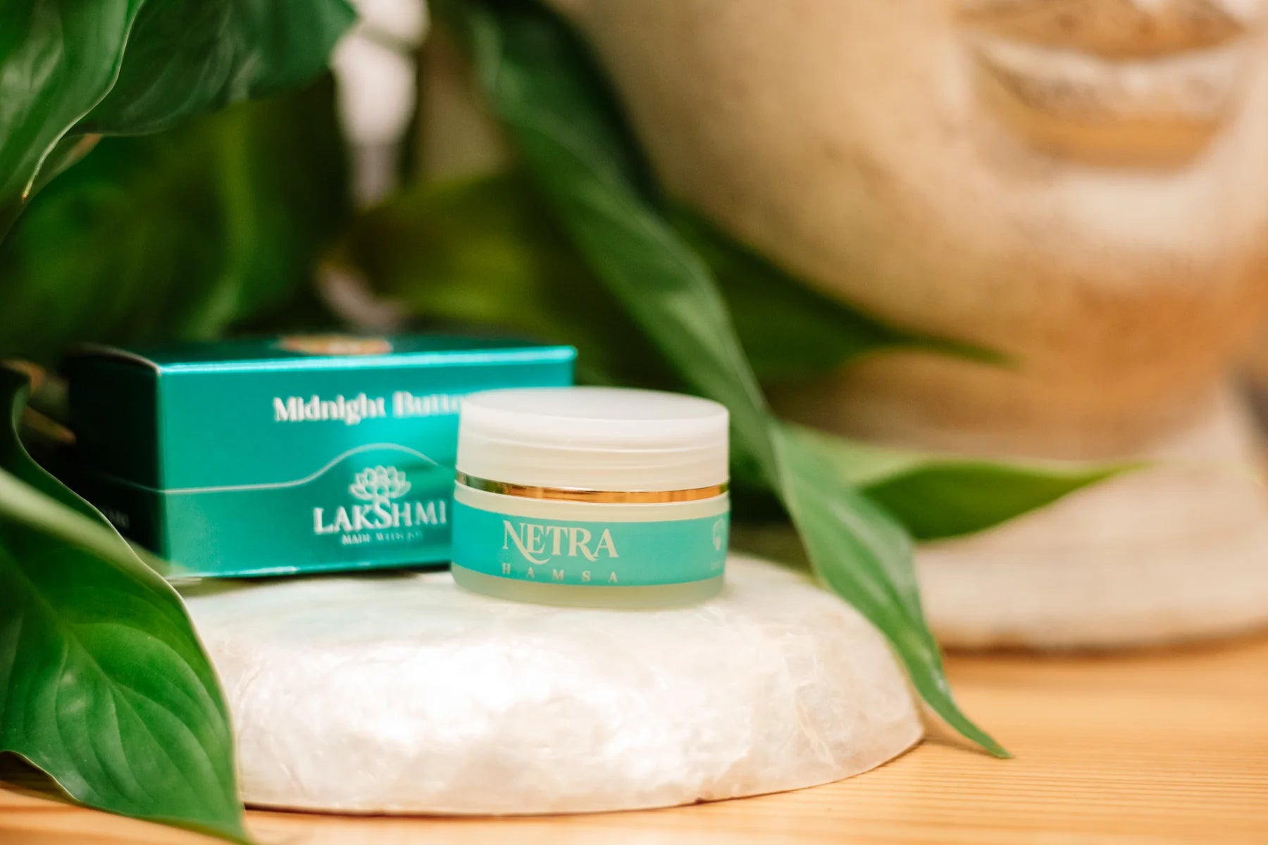 Midnight Butter Netra Lakshmi Contorno occhi Rigenerante è il trattamento notte per il contorno occhi con effetto rigenerante per tutti i tipi di pelle. Camomilla, Calendula e Altea svolgono una potente azione lenitiva, antinfiammatoria e calmante, riducendo rossore, irritazione e gonfiore.