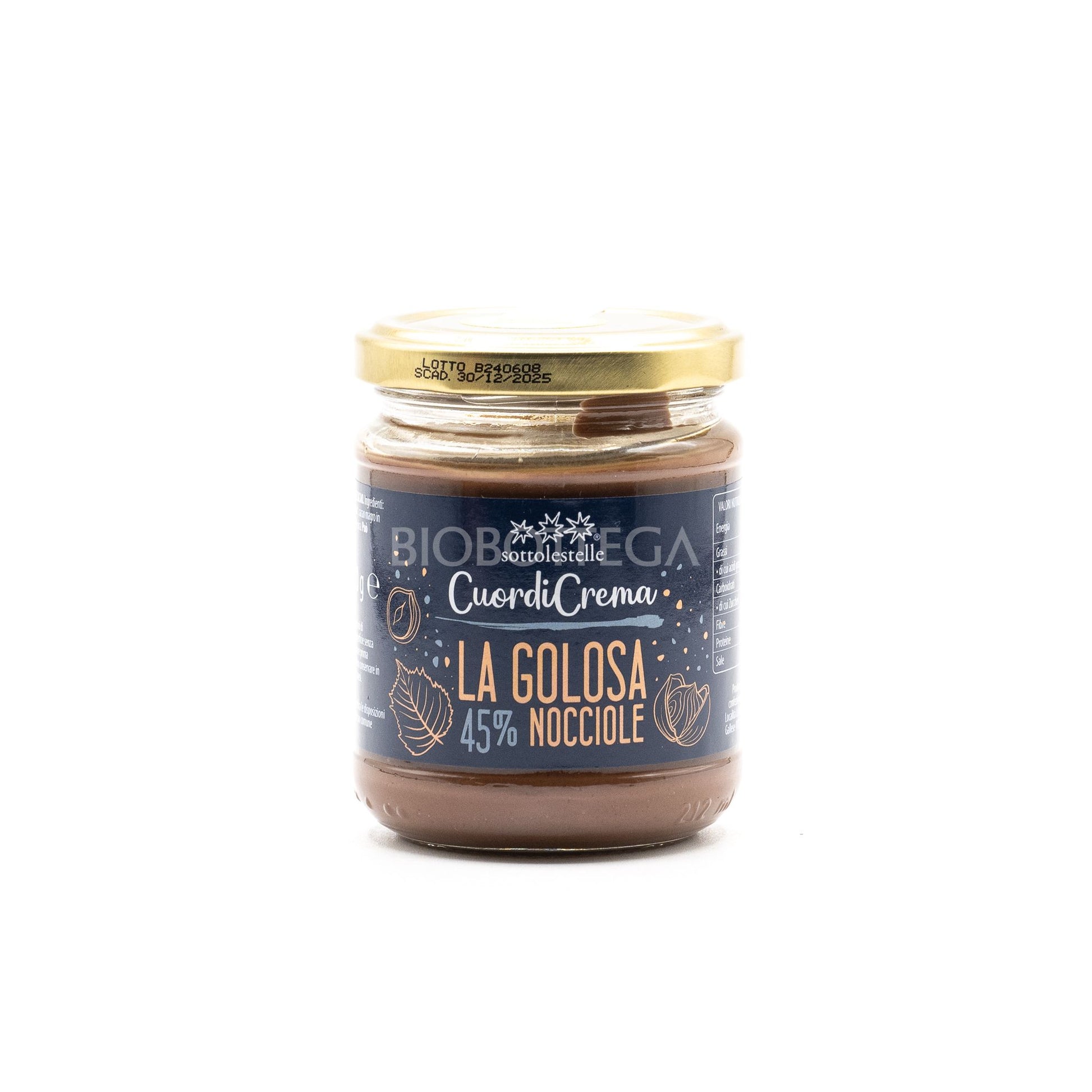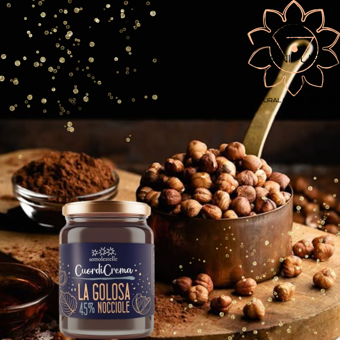 La crema di nocciole e cacao "La Golosa" è preparata con le migliori nocciole provenienti dal Lazio, varietà tonda romana gentile. Le nocciole vengono tostate con metodo tradizionale in un antico forno in ghisa, senza mai superare la temperatura di 100°C. La Golosa è preparata senza aggiunta di latte, è adatta anche a persone che hanno particolari esigenze alimentari. È inoltre garantita senza glutine, presente nel prontuario AIC e certificata Vegan Society. Scopri anche la nuova immagine delle altre creme spalmabili della gamma a base di cacao e nocciole italiane, nuove ricette senza olio di palma.