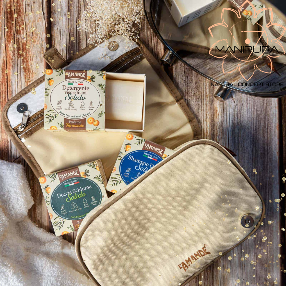 Detergente viso e mani solido dal profumo agrumato con oli essenziali italiani bio di mandarino e arancia amara, amido di mais e burro di karité.