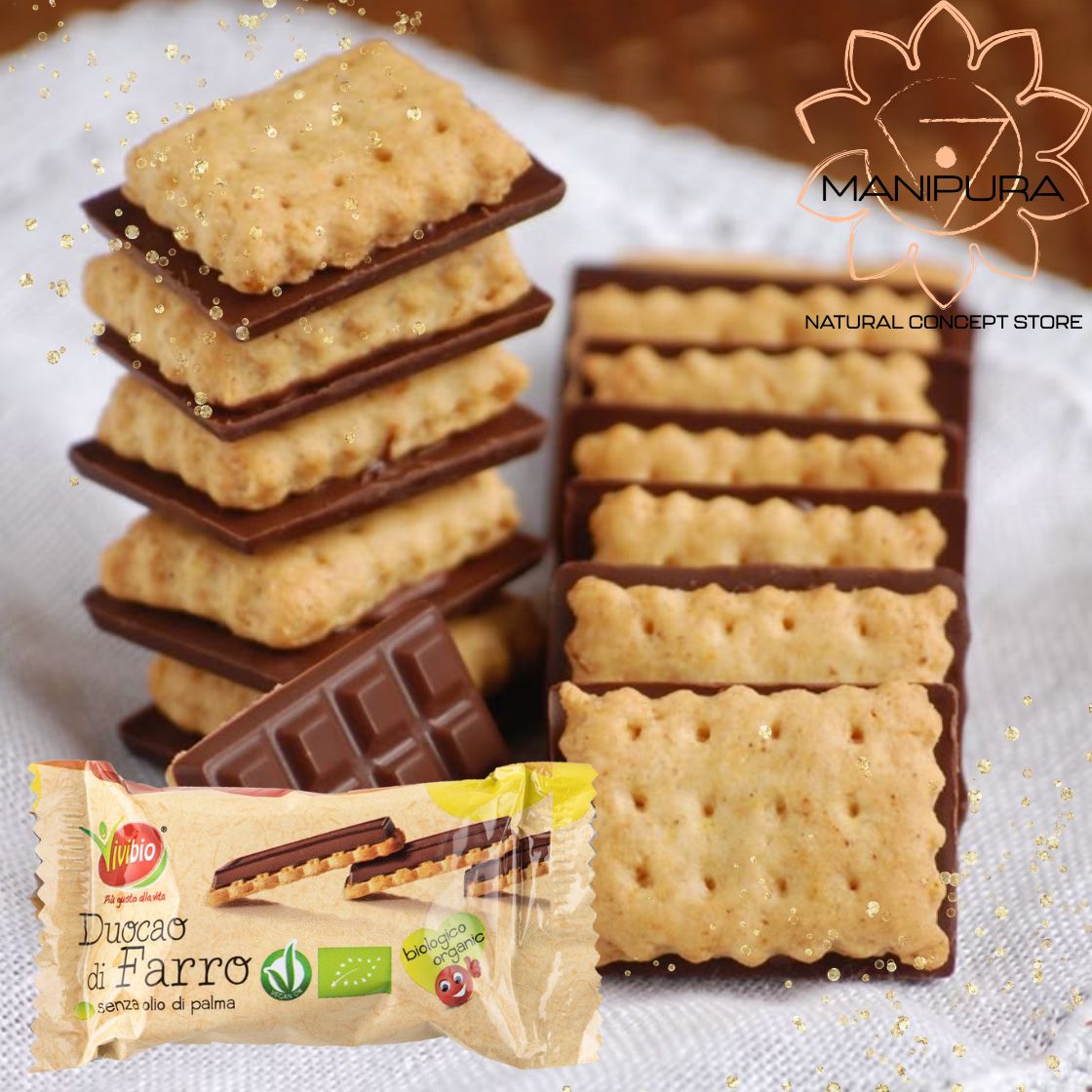 Concediti una pausa dolce e golosa con i duocao di farro di Vivibio! Ricoperti da un'irresistibile tavoletta al cacao e realizzati con ingredienti biologici, sono ideali da gustare a colazione, a merenda o come spuntino durante la giornata. In più, grazie alla mini confezione contenente due biscotti, sono perfetti da portare sempre con te, a scuola, a lavoro o semplicemente durante le tue passeggiate pomeridiane. Per un momento di vero gusto e piacere!