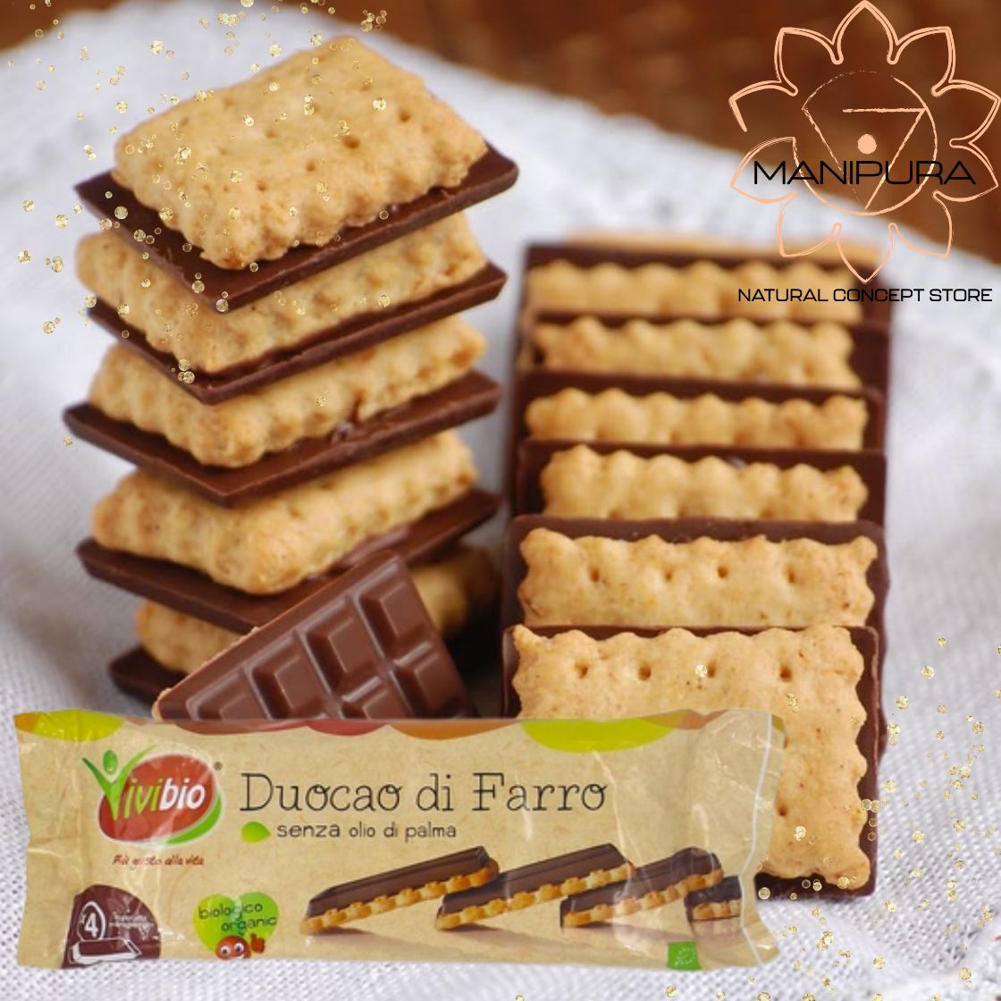 Duocao di Farro è un delizioso biscotto a base di farina di farro con una deliziosa copertura al cacao. Ideali da consumare come goloso break durante la giornata.