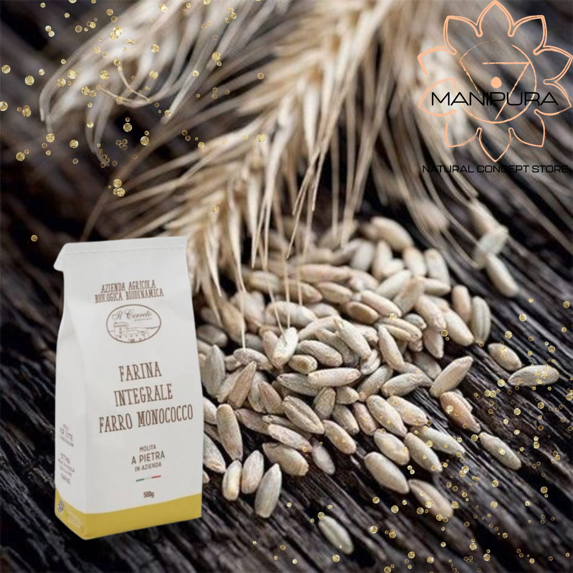 Infine, Il farro monococco rientra tra i grani antichi che abbiamo scelto di produrre nelle terre toscane de Il Cerreto. Prediligiamo le colture di grani antichi a tutela della biodiversità ma anche del patrimonio storico e culturale del territorio: si tratta di cereali difficilmente standardizzabili, per cui una farina di grani antichi non sarà mai la stessa l'anno successivo. Questi cereali ritrovati risultano intatti dal punto di vista genetico, hanno saputo adattarsi in autonomia ai cambiamenti climatici senza perdere nutrienti, ma anzi conservando digeribilità e qualità.
