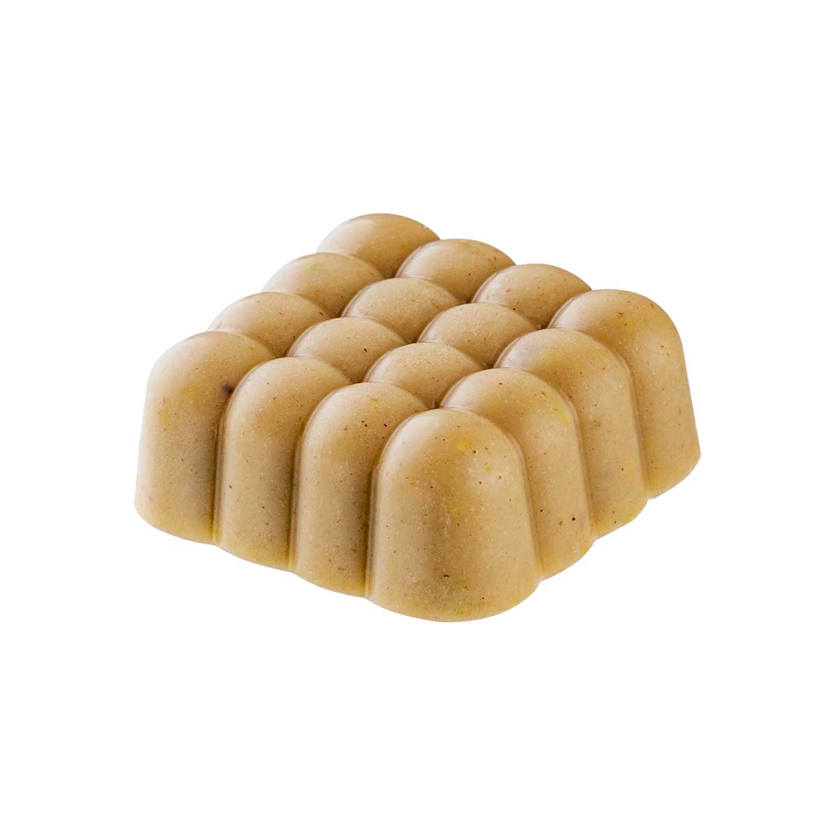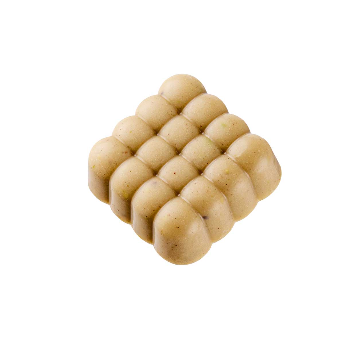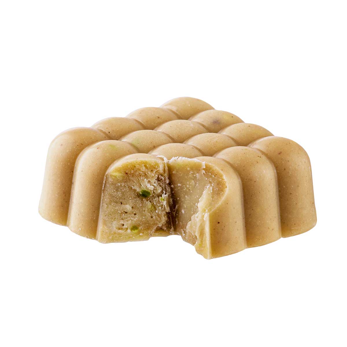 Realizzate artigianalmente, offrono un intenso aroma di pistacchio con leggere note salate. Pensate per gli amanti del pistacchio che vogliono concedersi un momento di puro piacere senza preoccupazioni. Confezionate singolarmente in un nuovo packaging completamente plastic free, per un’opzione deliziosa, pratica e tascabile, da portare sempre con sé. Può contenere tracce di altra frutta a guscio e arachidi.