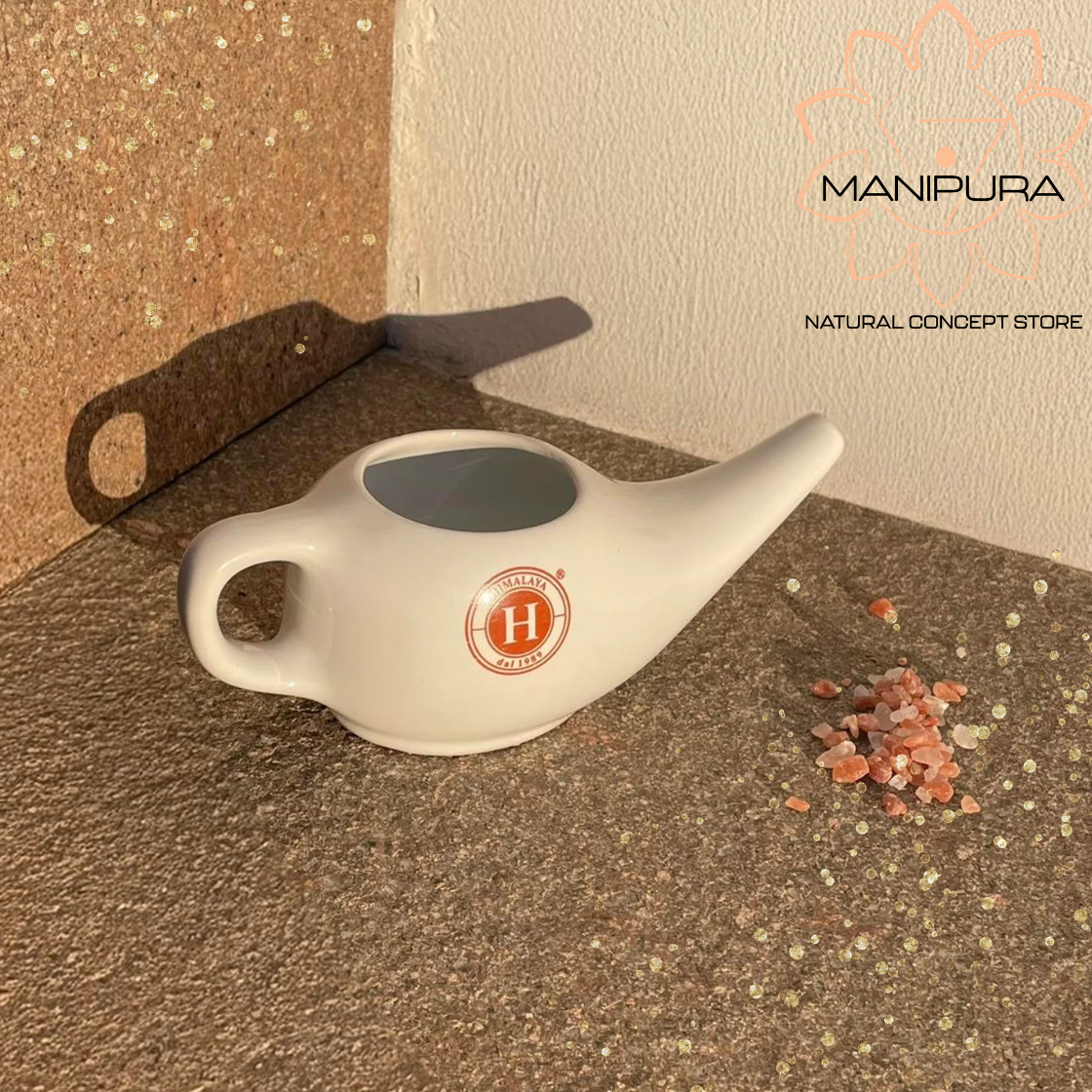 Neti lota in ceramica con sale dell’Himalaya per lavaggio nasale.
