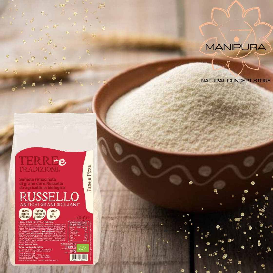 Semola rimacinata di grano duro Russello*. (*da agricoltura biologica)