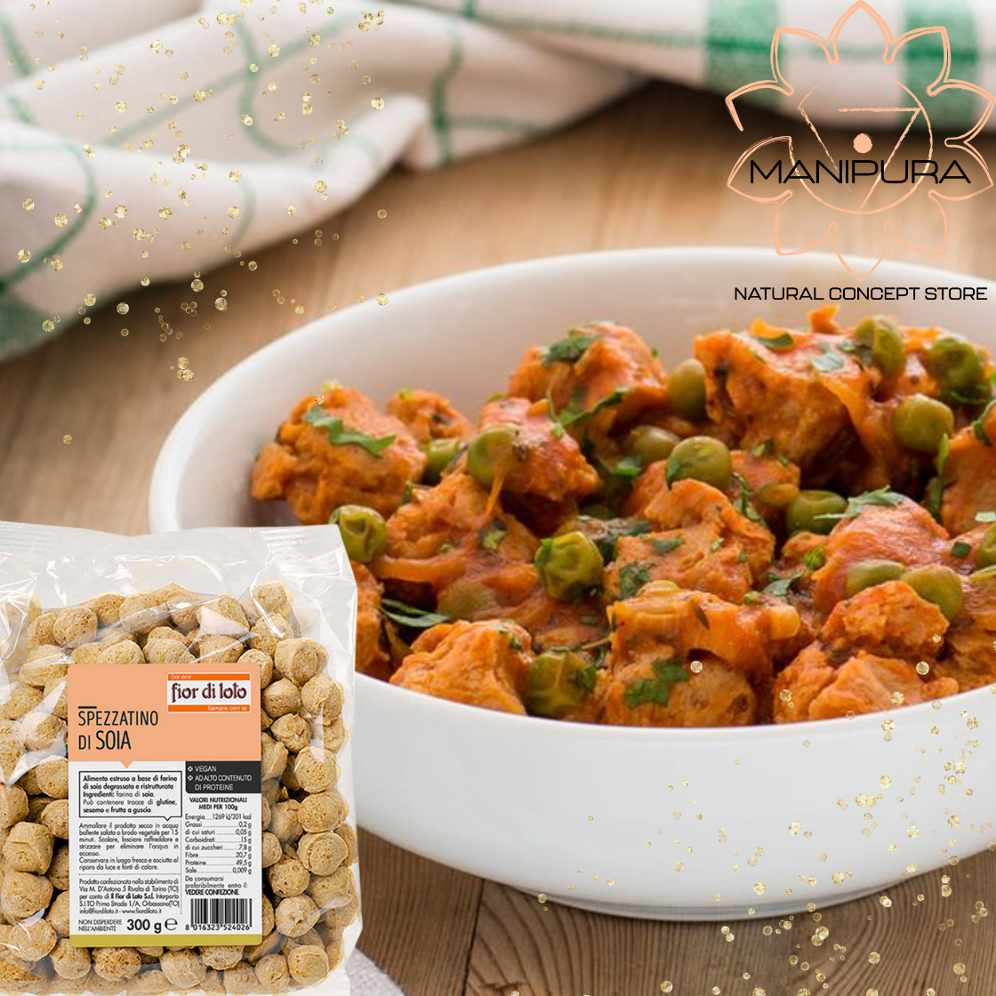 Lo Spezzatino di Soia Fior di Loto è un alimento completo, che può sostituire la carne.